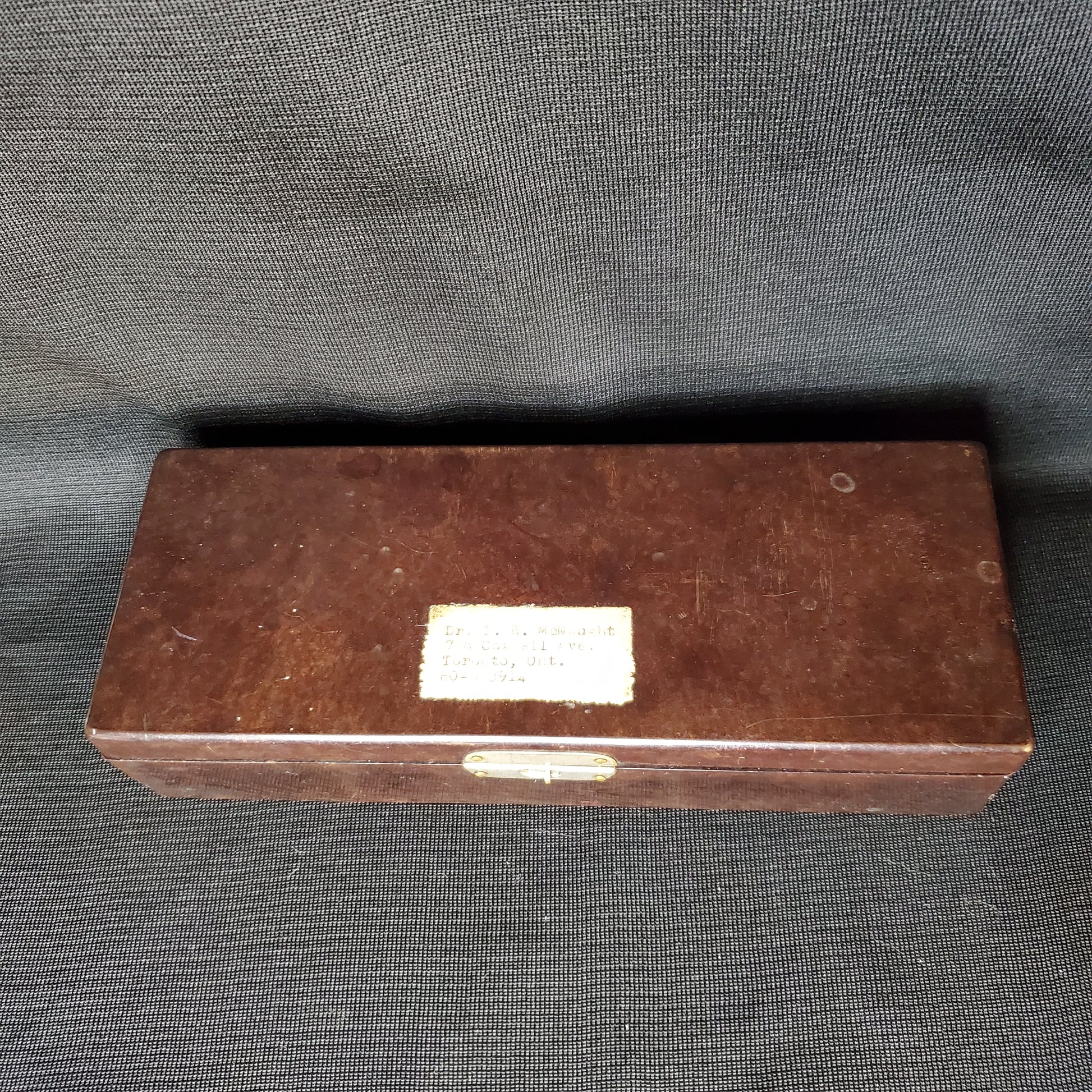 Step back into the Golden Age of medicine with this authentic 1930s Vintage Welch Allyn Otoscope Kit. This classic diagnostic set is a superb find for collectors, historians, and enthusiasts of vintage scientific instruments, offering a tangible glimpse into early 20th-century medical practice. The kit is housed in its original, highly collectible Bakelite case, which displays the characteristic dark brown phenolic resin and a beautiful patina accrued over nearly a century. Adding a layer of unique personal history, the case features an original name tag embedded on the lid, indicating its original owner (and you should insert the name here if you know it, e.g., "Dr. E. R. Smith"). The set contains the original otoscope handle and head, featuring the distinct black, speckled finish and brass accents. The fitted compartment holds various aural specula and components, all showing the honest, historical wear expected of a 1930s medical tool. While offered primarily as a vintage collectible and display piece, the age-appropriate wear on both the instrument and the case only enhances its genuine antique appeal. This is a truly rare and personalized piece of medical history.