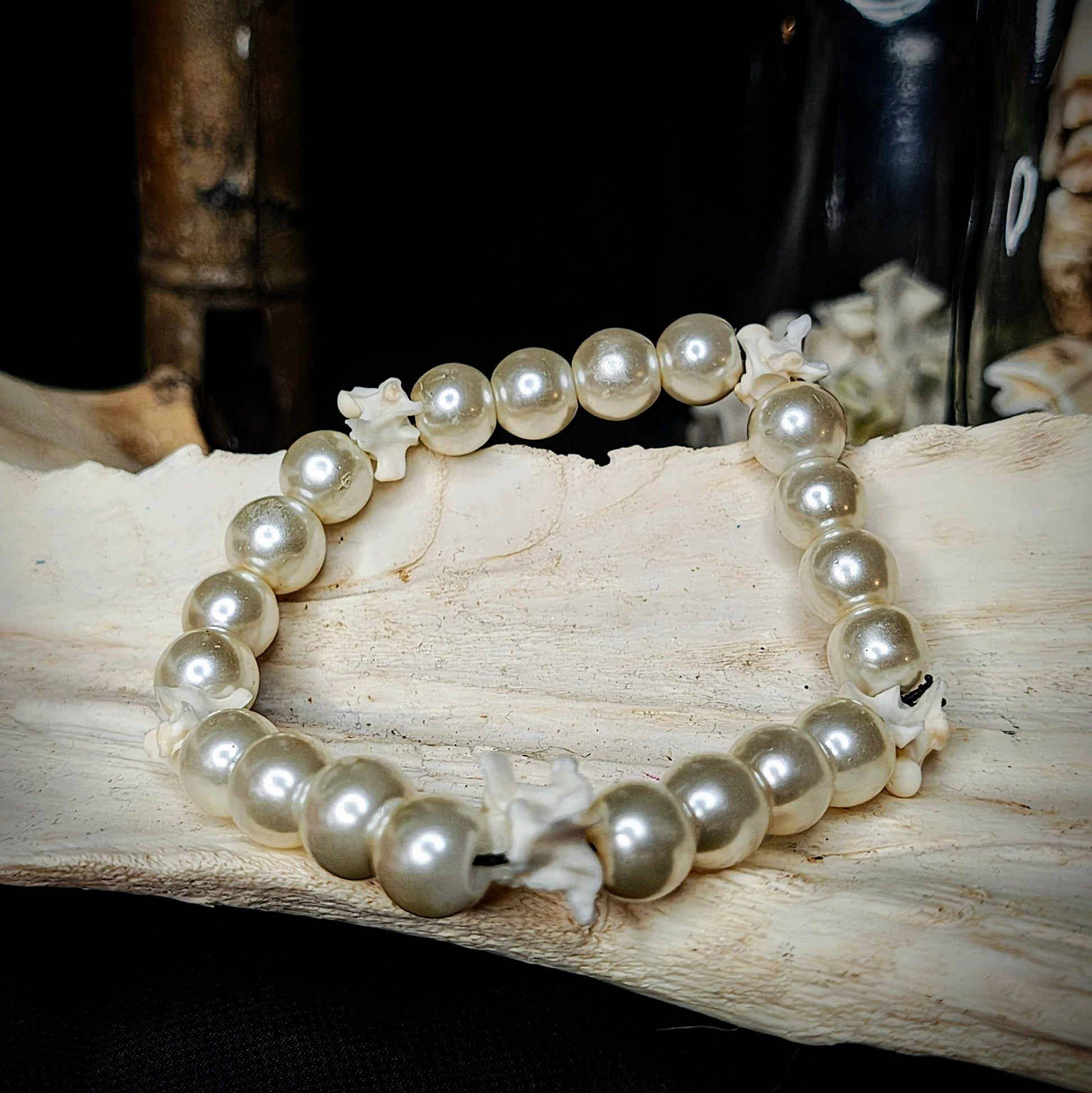 The Siren's Grace: Faux Peal & Bone Bracelet
